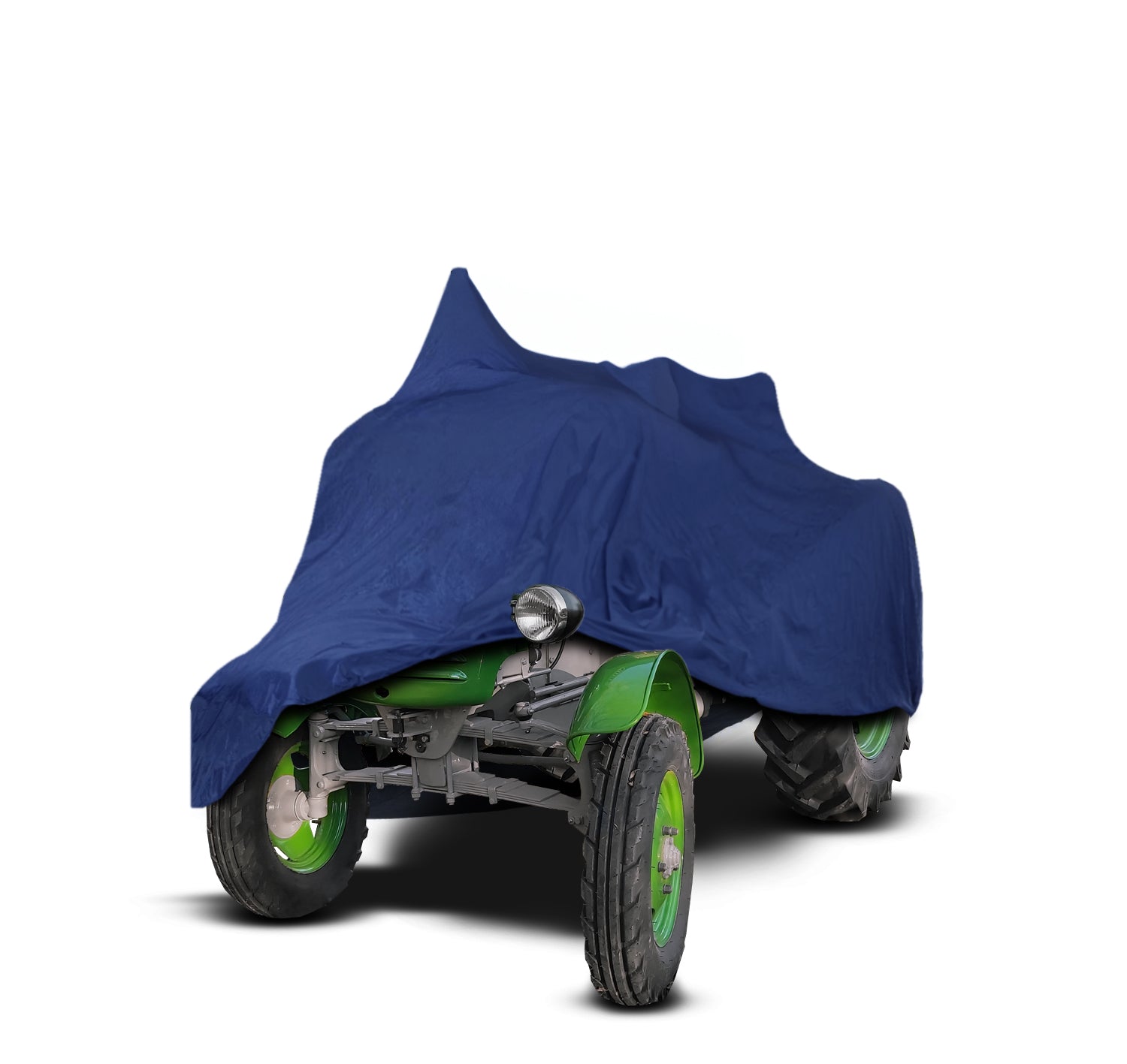 Protect your tractor with our high-quality tractor cover in dark blue . This cover is made from a highly breathable nonwoven fabric with a porous core, which ensures that your vehicle stays dry and the heating of the interior is minimized.