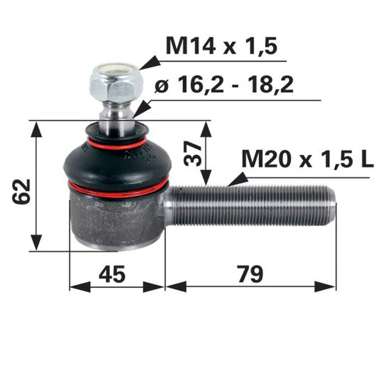 Giunto sferico M20x1,5 mm sinistro, adatto per Steyr 40, 50, 540, 545, 548, 650, 658, 760, 768, 870.