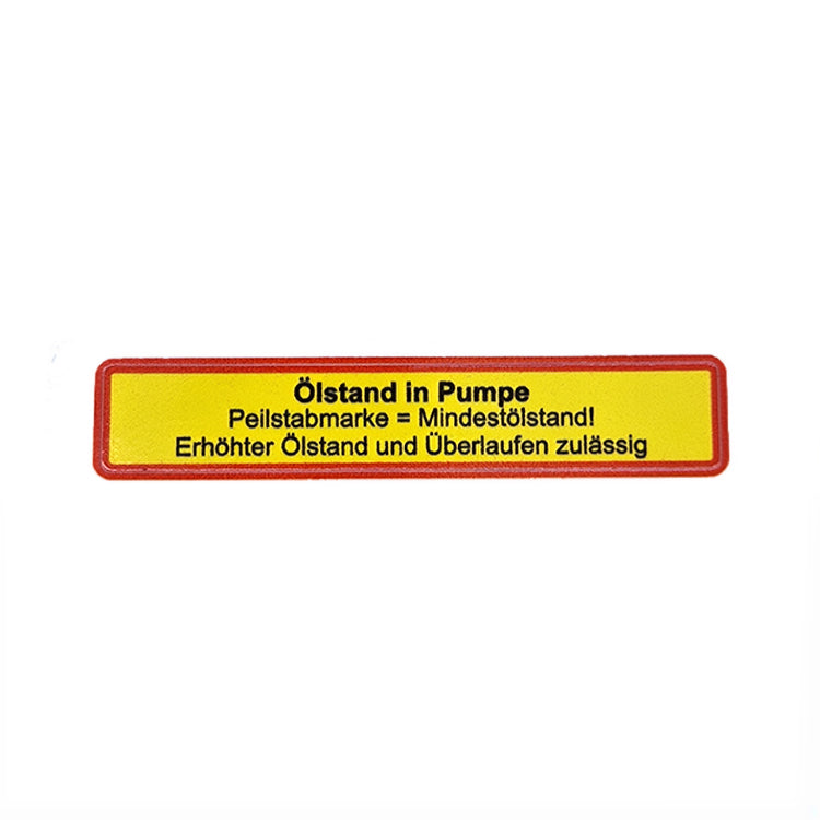 Dieser hochwertige Aufkleber „Ölstand in Pumpe“ ist passend für Traktoren der Steyr Baureihe 13 T180, T182, T185 und T280 mit Friedmann & Maier Einspritzpumpe.