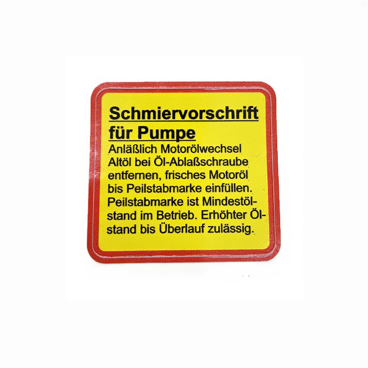 Dieser hochwertige Aufkleber „Schmiervorschrift für Pumpe“ ist passend für Traktoren der Steyr Jubiläumsserie T188, T190, T288 und T290 mit Friedmann & Maier Einspritzpumpe.
