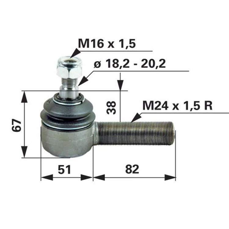 Kugelgelenk M24x1,5mm, passend zu Steyr 40, 50, 540, 545, 548, 650, 658, 768, 988, 1090, 1108.