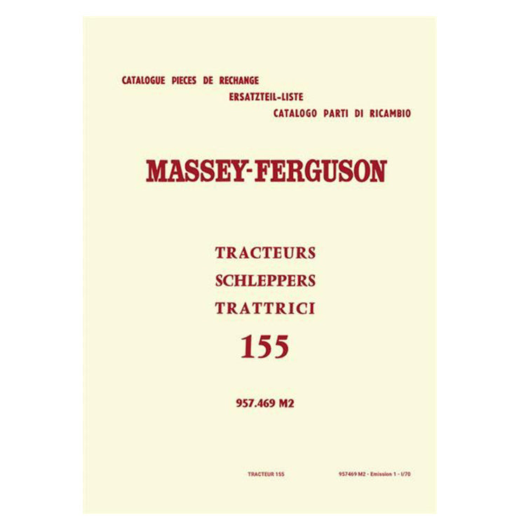 Ersatzteilkatalog für den Massey-Ferguson MF155. Inhalt: die Einzelteile soind abgebildet und beschrieben. Ausgabe 1970, 312 Seiten, DIN A4