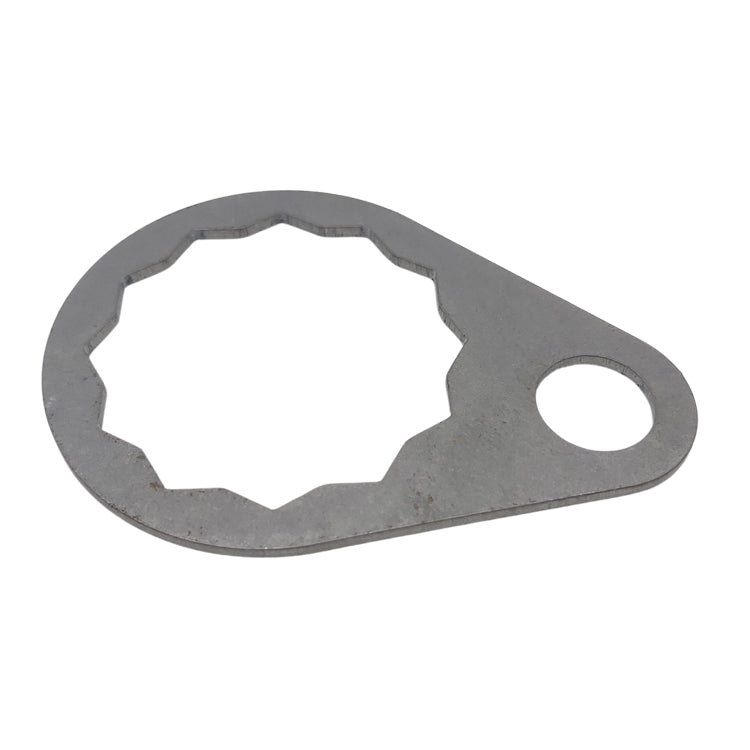 Sicherungsblech für Abschlussmutter des Reglergestänges.